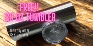 FREE 20 Oz Stainless Steel Tumbler with any order over $35. Automatically applied at checkout.